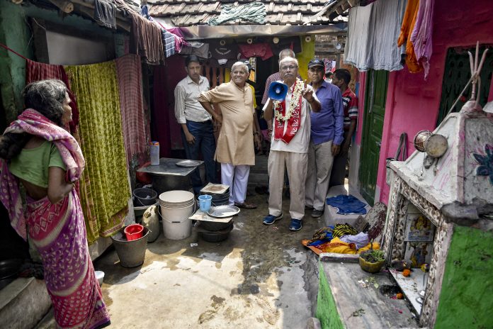 Howrah: CPI(M) candidate Goutam Roy campaigns for the Howrah Assembly constituency ahead of the state Assembly elections, in Howrah, West Bengal, Sunday, March 29, 2026. (PTI Photo)(PTI03_29_2026_000152B)