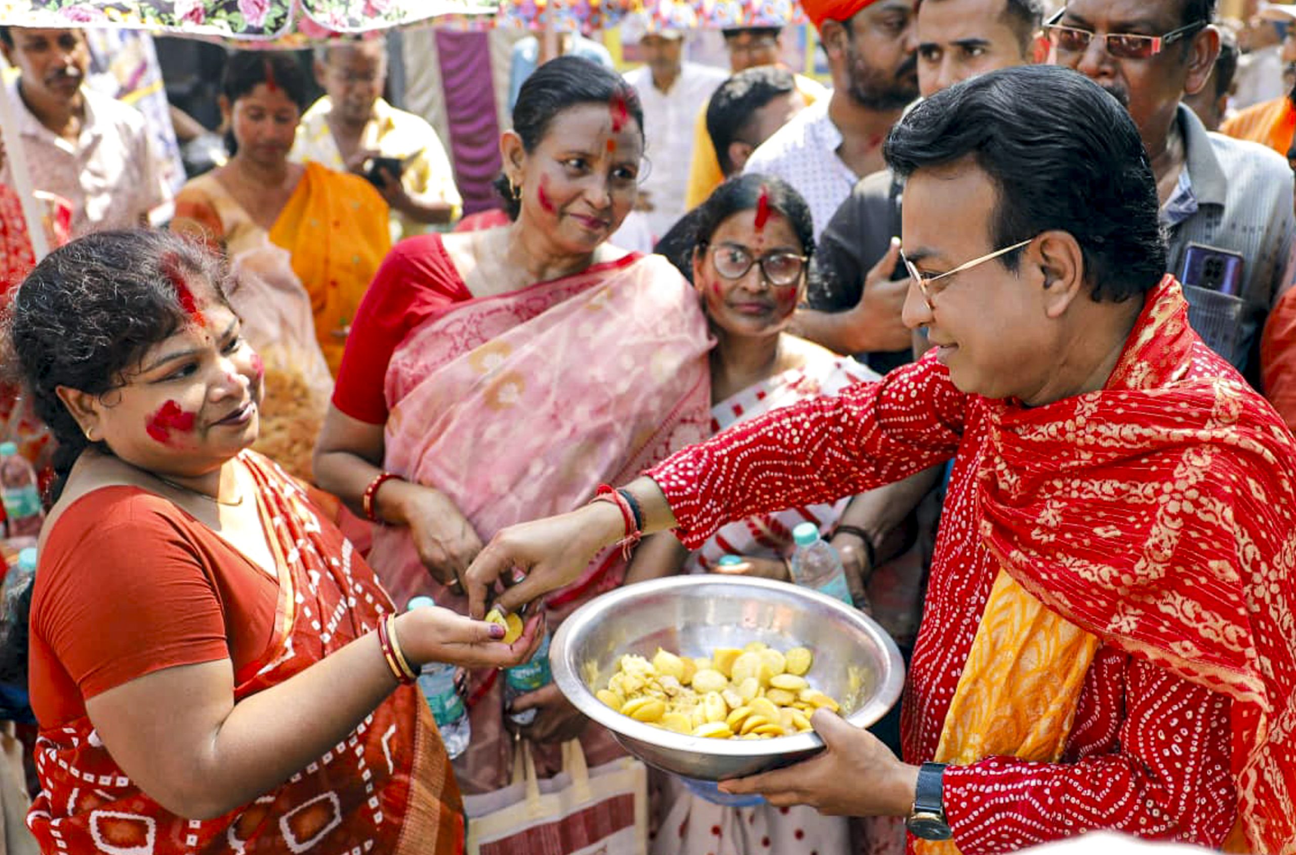 Howrah: BJP candidate from Shibpur Assembly constituency, Rudranil Ghosh, campaigns ahead of the West Bengal Assembly elections, in Howrah, Friday, March 27, 2026. (PTI Photo) (PTI03_27_2026_000224B)