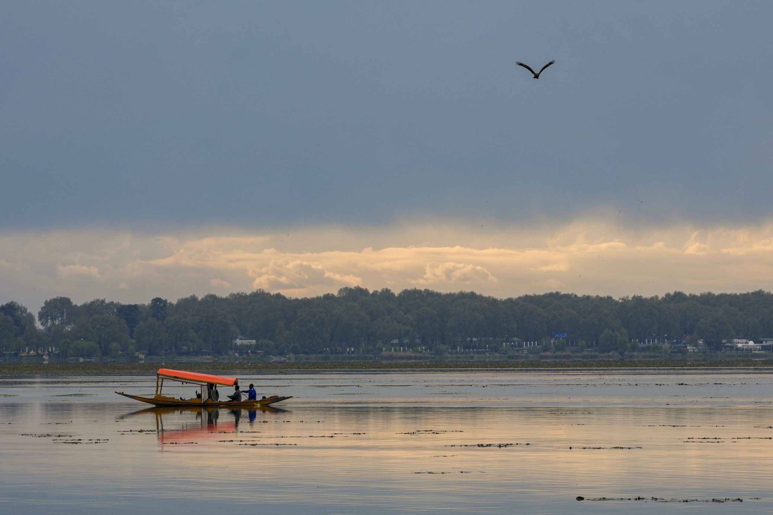 Srinagar: Tourists take part in �Shikara� ride during cloudy weather, at Dal Lake in Srinagar, Monday, March 31, 2026. (PTI Photo/S Irfan)(PTI03_31_2026_000288B)
