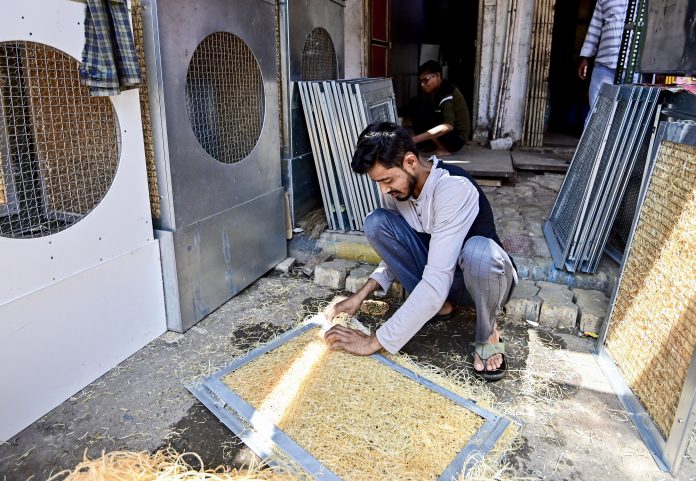 Prayagraj: A worker prepare air coolers for the summer season, in Prayagraj, Uttar Pradesh, Sunday, March 29, 2026. (PTI Photo)(PTI03_29_2026_000057B)