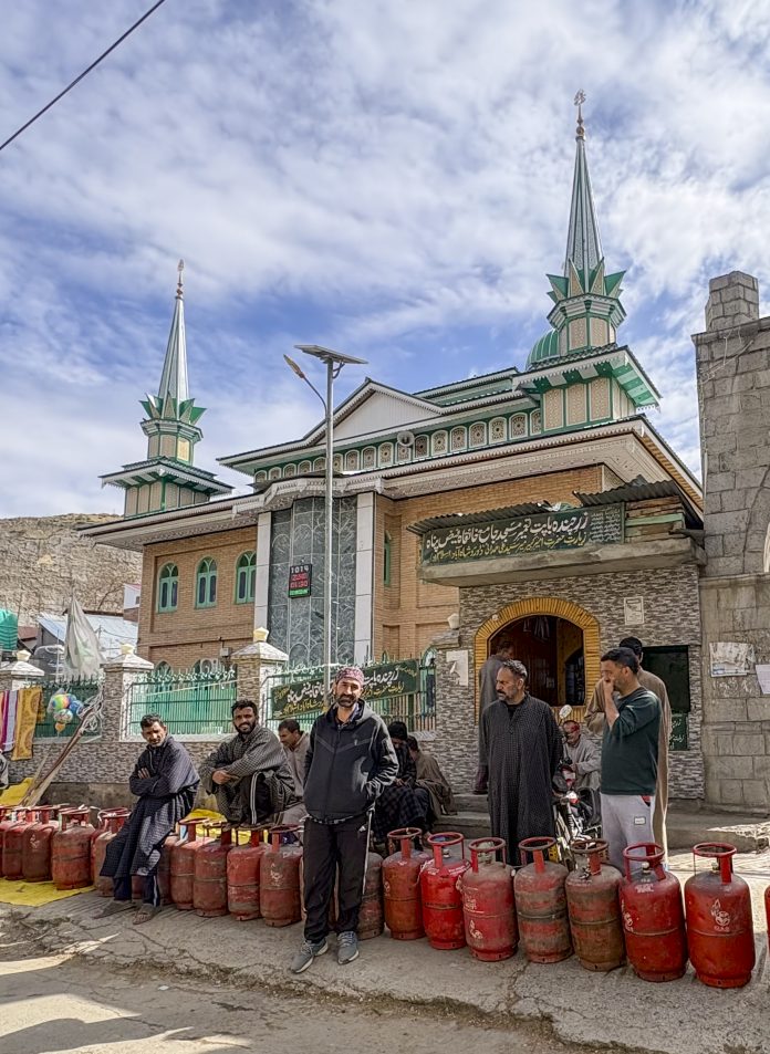 Anantnag: People wait with empty LPG cylinders to avail the refilled ones amid ongoing supply crisis, in Anantnag, Jammu and Kashmir, Thursday, March 26, 2026. (PTI Photo)(PTI03_26_2026_000091B)