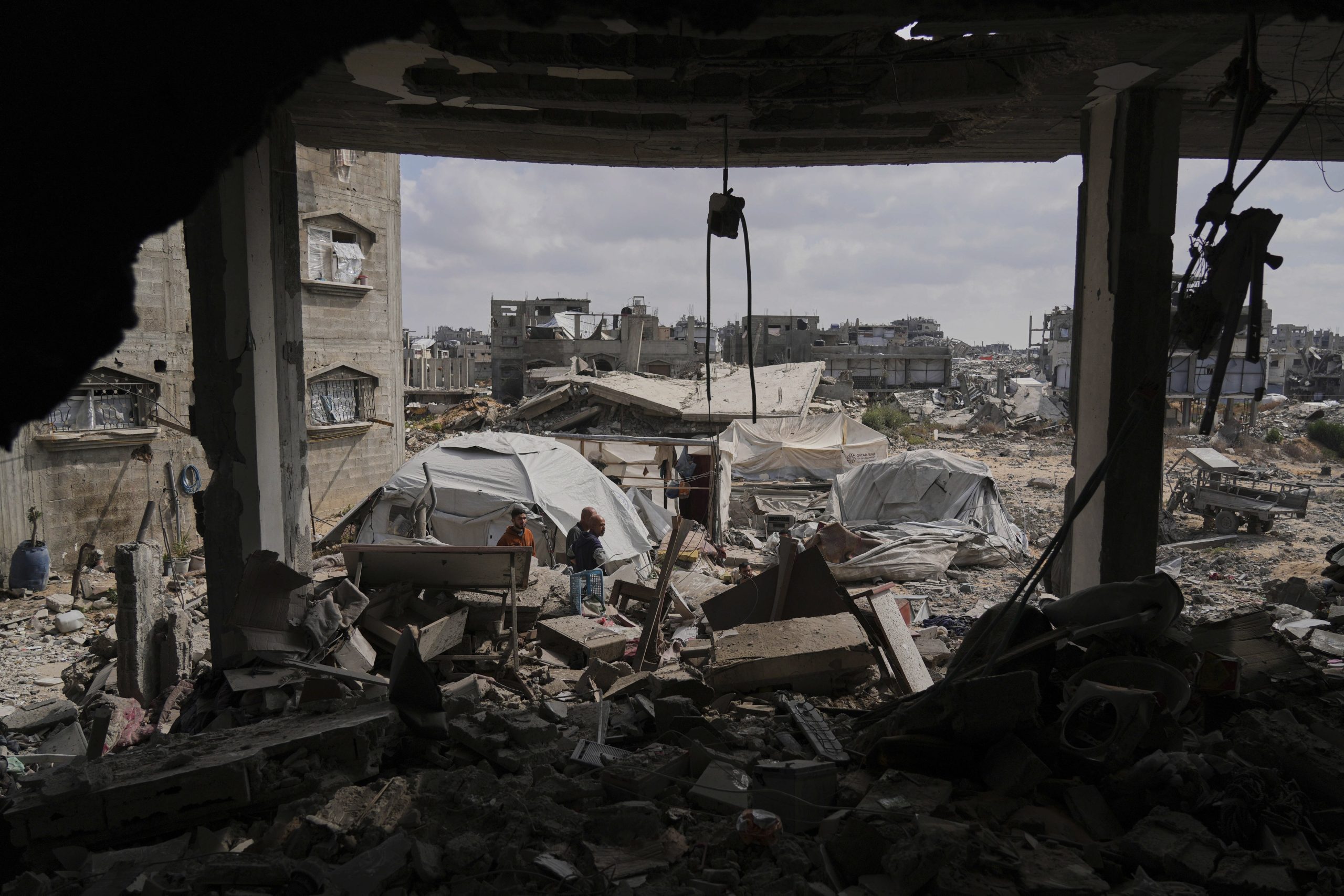 The pre-dawn strikes hit three houses in the urban Nuseirat refugee camp, according to staff at the Al-Aqsa hospital, which received the bodies. Among the dead were three children, including two brothers whose bodies arrived in pieces, according to the hospital’s morgue.
