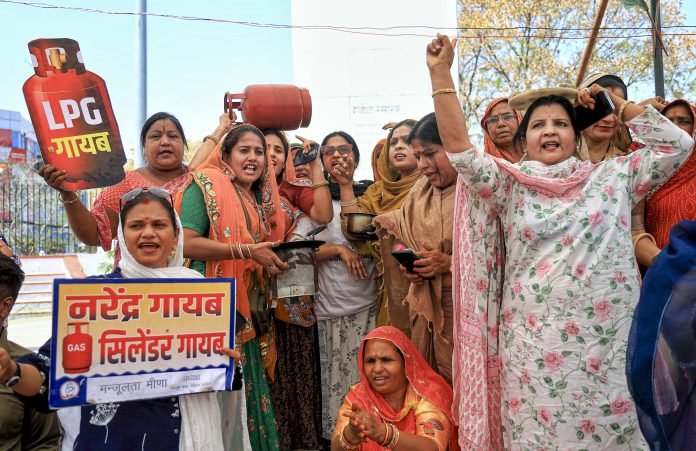 West Asian conflict: Cong workers protest against LPG supply crisis