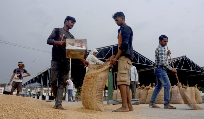 Workers at Patiala’s grain market