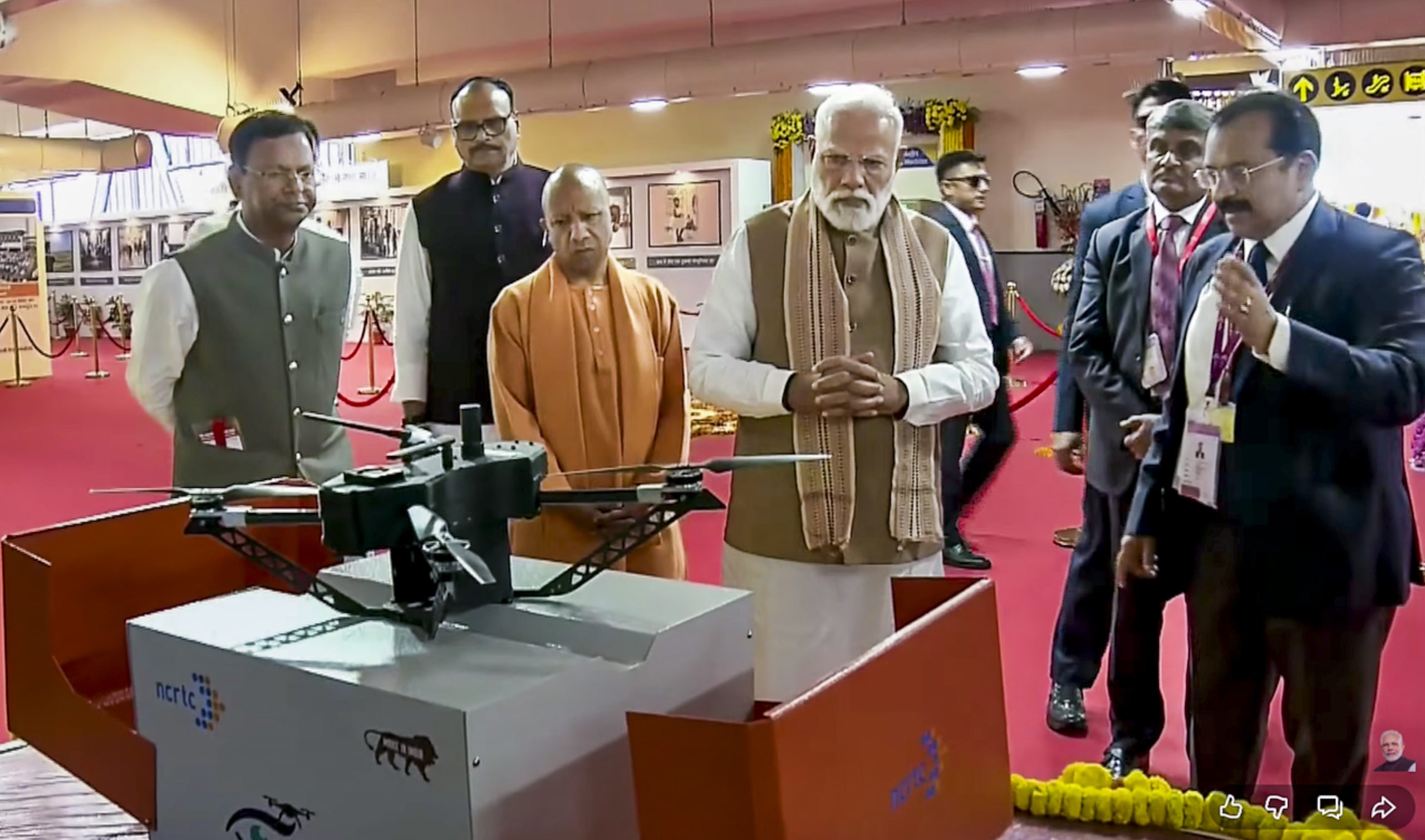 **EDS: THIRD PARTY IMAGE** In this screengrab from a video posted on Feb. 22, 2026, Prime Minister Narendra Modi, Uttar Pradesh Chief Minister Yogi Adityanath and others during the flagging-off ceremony of the Namo Bharat train and Meerut Metro services. (@NarendraModi/Yt via PTI Photo)(PTI02_22_2026_000072B)