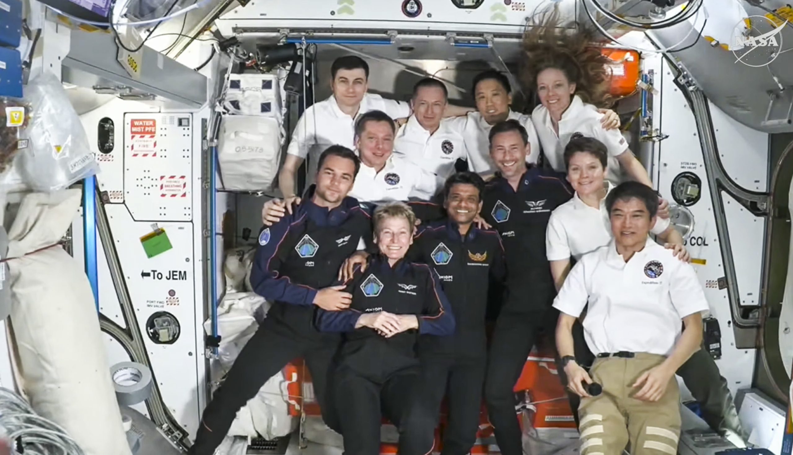 **EDS: THIRD PARTY IMAGE** In this screengrab from @NASA via Youtube on June 26, 2025, India's Shubhanshu Shukla with three other astronauts and International Space Station (ISS) crew after the Axiom-4 mission's Space-X Dragon spacecraft docked to the ISS, as part of the mission. (@SpaceX on X via PTI Photo) (PTI06_26_2025_000273B)